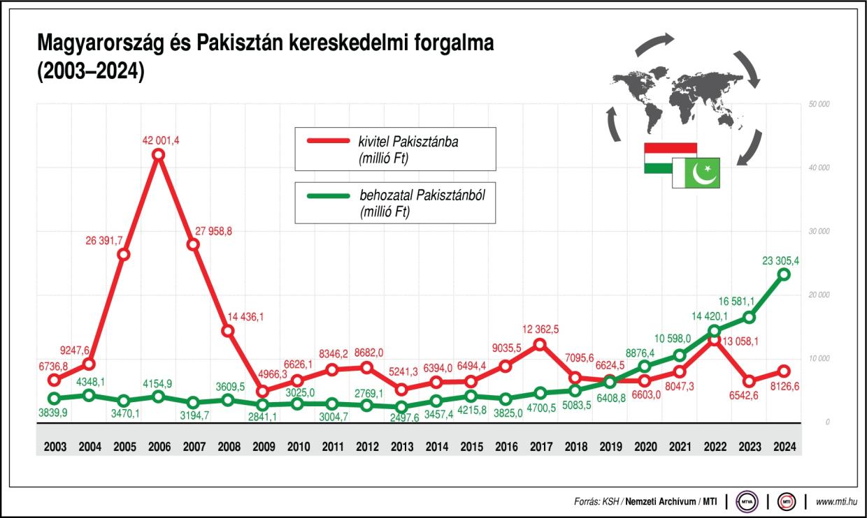 A miniszter üdvözölte, hogy a kétoldalú kereskedelem volumenét már idén áprilisig sikerült a duplájára emelni, és tavaly megdőlt a pakisztáni import rekordja is.