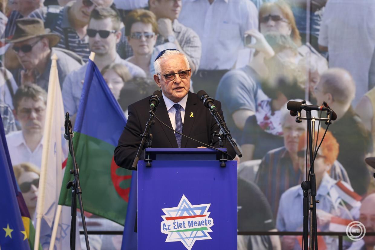 Megtartották az Élet menetét vasárnap Budapesten; a holokauszt áldozataira emlékező, 21. alkalommal megrendezett séta résztvevői a Cipők a Duna-parton emlékműtől a Lánchídon át a Várkert Bazárhoz vonultak, ahol Grósz Andor, a Magyarországi Zsidó Hitközségek Szövetsége (Mazsihisz) elnöke, az Élet Menete Alapítvány kuratóriumi elnöke arról beszélt: az Izrael elleni 2023. október 7-i terrortámadás megrendítette azt a hitet, hogy ami a zsidósággal a 20. század közepén történt, az egyszeri és megismételhetetlen borzalom volt.