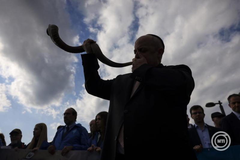 A menet - élén elektromos kisbuszokkal utazó holokauszt-túlélőkkel - a sófár hangjára indult el, amelyet Verő Tamás főrabbi szólaltatott meg.