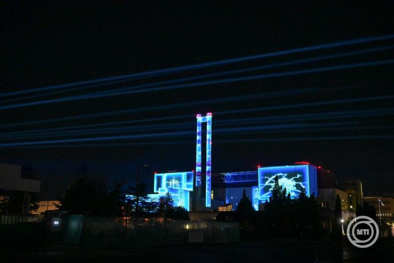 Borítókép: Paks, 2025. október 3. Fényfestés a paksi atomerőmű épületén az erőmű alapkőletételének 50. évfordulója alkalmából tartott sajtóesemény után 2025. október 3-án. MTI/Bruzák Noémi