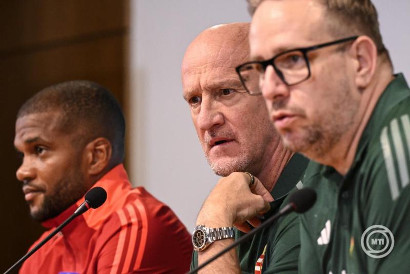 Borítókép: Lisszabon, 2025. október 13. Loic Nego és Marco Rossi szövetségi kapitány (b-j2) a magyar labdarúgó-válogatott sajtótájékoztatóján az Estádio José Alvalade stadionban, Lisszabonban 2025. október 13-án. Portugália és Magyarország világbajnoki selejtezőmérkőzést játszi egymással október 14-én. MTI/Szigetváry Zsolt