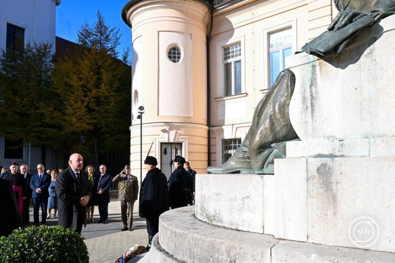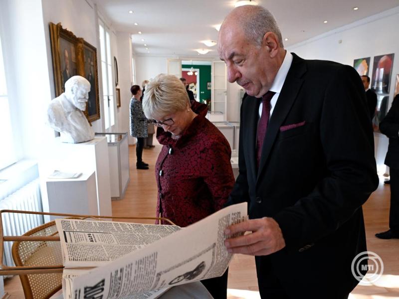 Borítókép: Révkomárom, 2025. október 15. Sulyok Tamás köztársasági elnök megtekinti a Duna Menti Múzeum helytörténeti kiállítását magánlátogatásán a révkomáromi Zichy-palotában 2025. október 15-én. Mellette felesége, Nagy Zsuzsanna. MTI/Máthé Zoltán