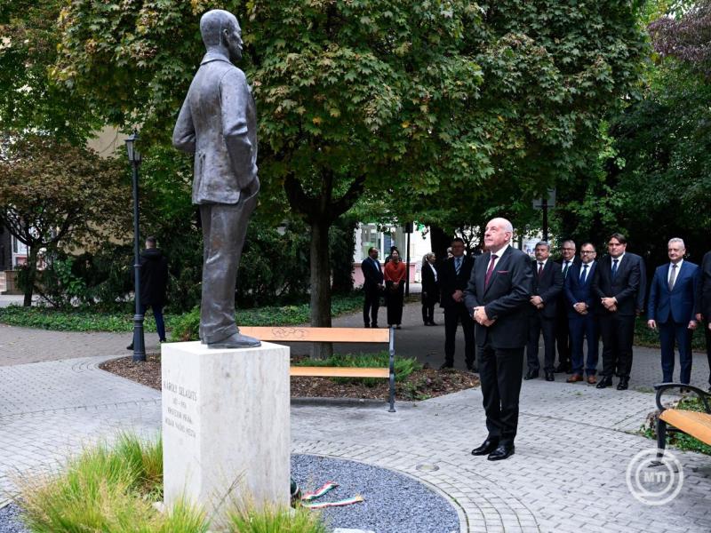 A köztársasági elnök ezt követően az emlékezés virágait helyezte el Jókai Mór szobránál.