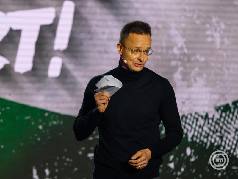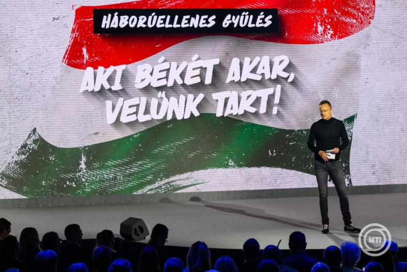 Borítókép: Győr, 2025. november 15. Szijjártó Péter külgazdasági és külügyminiszter felszólal a digitális polgári körök által szervezett első háborúellenes gyűlésen a győri Olimpiai Sportpark Multicsarnokában 2025. MTI/Vasvári Tamás