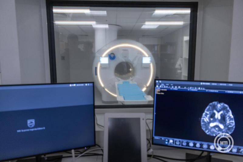 Az új "3 Teslás" MR-készülék egy mesterséges intelligenciával ellátott berendezés, amelynek különlegessége, hogy a mesterséges intelligenciának egyrészt az adatgyűjtésben, másrészt az adatok feldolgozásában is van szerepe, miközben a gép által készített felvételek képminőség "valami eszméletlen fantasztikus, ilyet nem láttunk még" - magyarázta Berényi Ervin.