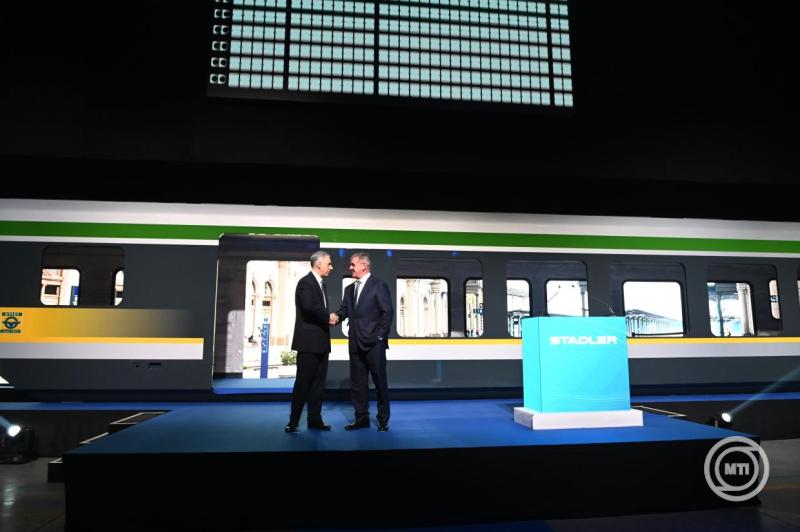 Borítókép: Szolnok, 2025. november 21. Lázár János építési és közlekedési miniszter (b) és Peter Spuhler, a Stadler Rail Csoport igazgatóságának elnöke (j) a GYSEV új InterCity FLIRT motorvonat-flottája első festett kocsiszekrényének bemutatásán Szolnokon, a Stadler Kft. telephelyén 2025. november 21-én. A svájci Stadler cégtől 11 új Flirt motorvonat megvásárlásól szól a szerződés, de tárgyalnak további 10 új vonat megvásárlásáról is 40 milliárd forint értékben. MTI/Mészáros János
