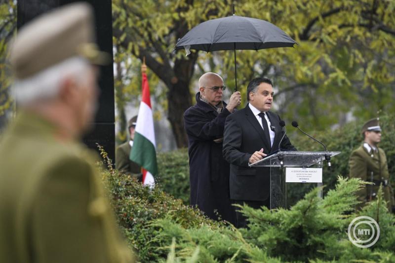 "Ma mégis azt látjuk, hogy egyes nyugati és hazai, magukat felelősnek és haladónak nevező politikusok kettős mércét alkalmazva, szemérmetlen módon tesznek különbséget diktatúra és diktatúra között. Azt látjuk, hogy a szabadságára oly büszke, szuverenitásáért súlyos véráldozatokkal megküzdött hazánkat ma azok akarják demokráciára, jogállamiságra tanítani, akik előbb Moszkvától, most pedig Brüsszeltől várják az erre vonatkozó direktívákat" - mondta.