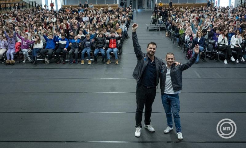 Kapu Tibor és Cserényi Gyula kutatóűrhajósok mintegy 1200 gyermeknek tartottak élménybeszámolót kiképzésükről és Kapu Tibor űrutazás során szerzett élményeiről a HUNOR Roadshow győri állomásán kedden a Széchenyi István Egyetemen.