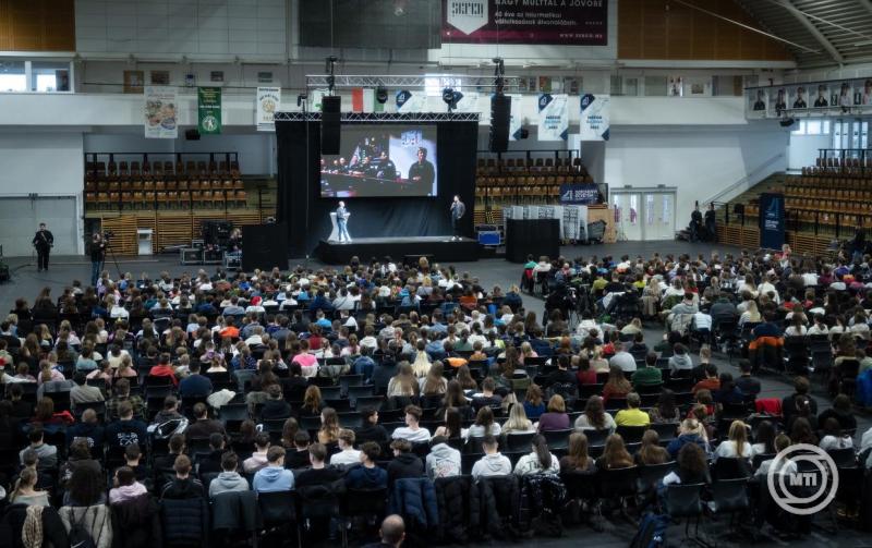 Borítókép: Győr, 2025. december 9. Kapu Tibor kutatóűrhajós (b) és Cserényi Gyula tartalékos kutatóűrhajós a HUNOR Roadshow győri állomásán tartott élménybeszámolón a Széchenyi István Egyetemen 2025. december 9-én. MTI/Krizsán Csaba