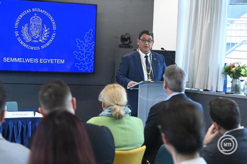 Borítókép: Budapest, 2025. december 9. Merkely Béla, a Semmelweis Egyetem rektora (k), Bidló Judit, a Belügyminisztérium egészségügy szakmai irányításáért felelős helyettes államtitkára (b) és Vincze Rita, a Siemens Healthcare Kft. ügyvezető igazgatója (j) átvágja a nemzeti színű szalagot két csúcstechnológiás képalkotó berendezés átadásán a Semmelweis Egyetem Városmajori Szív- és Érgyógyászati Klinika nemrég megnyílt diagnosztikai és terápiás központjában 2025. december 9-én. A most átadott CT- és MR-berendezés a Siemens vállalat legújabb fejlesztése. MTI/Soós Lajos