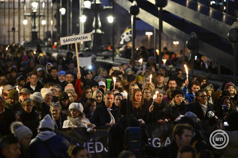 A Tisza Párt által szervezett gyermekvédelmi tüntetés résztvevői az V. kerületi Deák térről vonultak a Lánchídon, majd az alagúton át a budai Várba a Sándor-palotához és a Karmelita-kolostorhoz.