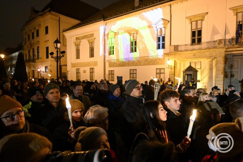 Borítókép: Budapest, 2025. december 13. Magyar Péter, a Tisza Párt elnöke (elöl, j2), Forsthoffer Ágnes, a párt alelnöke (j) és Rost Andrea operaénekes, Jász-Nagykun-Szolnok vármegye 1-es választókerületében a párt országgyűlési képviselőjelöltje (j3) a bántalmazott gyermekek melletti tüntetésen a budai Váralagútban 2025. december 13-án. MTI/Hegedüs Róbert