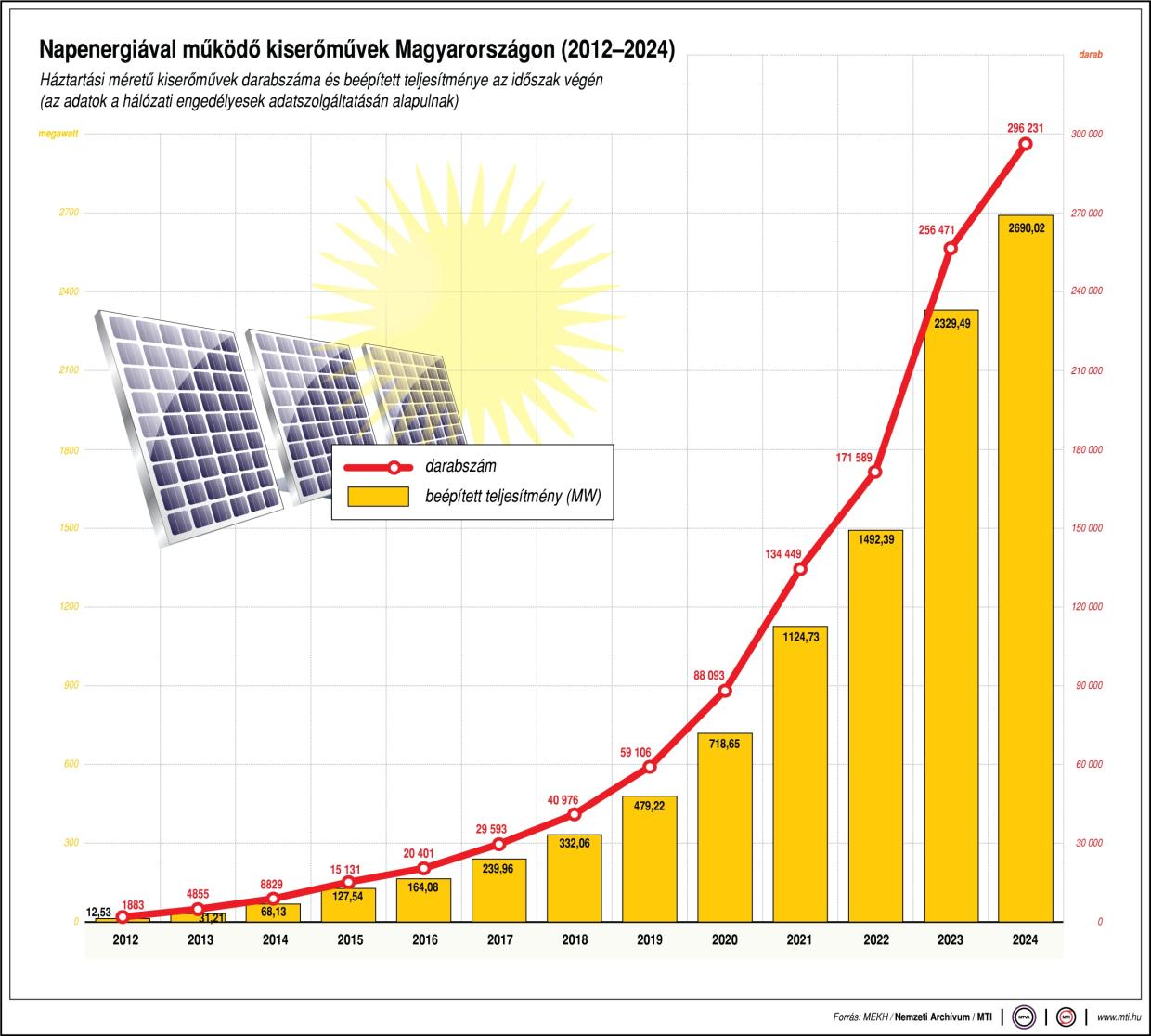 Magyarország világelső a napelemekkel megtermelt áram részarányában. 2019 és 2024 között az európai országok közül nálunk bővült a leggyorsabb ütemben a megújulók összes kapacitása. A zöldenergia alapú villamosenergia-termelők beépített teljesítménye idén őszre 9 gigawatt fölé nőtt - tették hozzá.