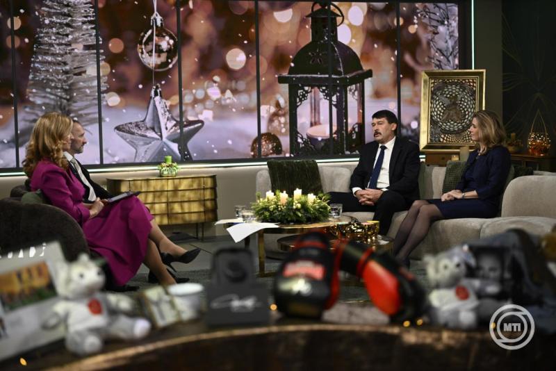 Borítókép: Budapest, 2025. december 21. Áder János volt köztársasági elnök, a Regőczi Alapítvány alapítója (j2) és felesége, Herczegh Anita, a Regőczi Alapítvány kuratóriumi elnöke (j), Novodomszky Éva (b) és Kovács István "Koko" műsorvezetők a közmédia Jónak lenni jó! című műsorában az MTVA óbudai gyártóbázisának stúdiójában 2025. december 21-én. A közmédia jótékonysági kampányának kedvezményezettje a háború sújtotta Kárpátalján élő beteg, árva és otthonukat vesztett gyermekeket támogató KEGYES, a Kárpátaljai "Elfelejtett" Gyermekek Segítése Jótékonysági Alapítvány. MTI/Bodnár Boglárka