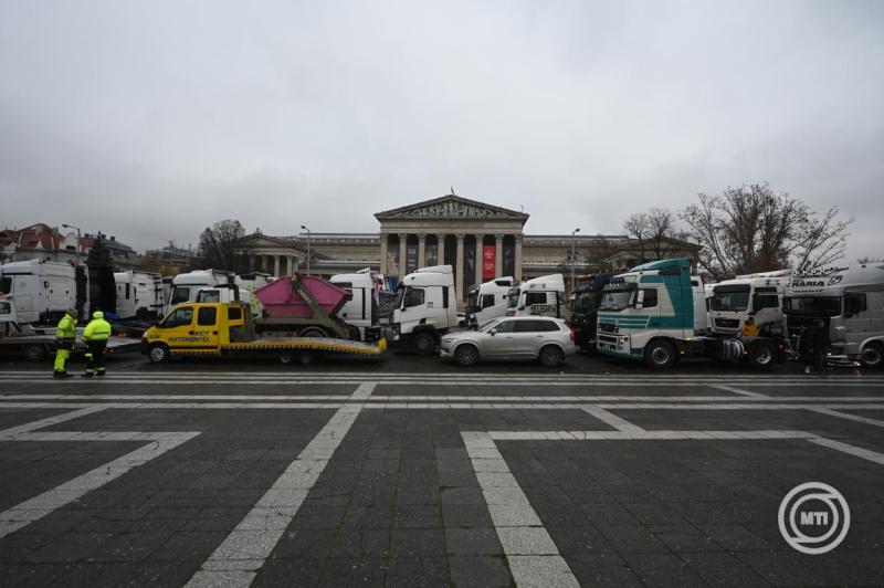 Borítókép: Budapest, 2025. december 22. A fuvardíjak emelése ellen tüntető kamionosok gépjárművei sorakoznak a fővárosi Hősök terén 2025. december 22-én. Az Építési és Közlekedési Minisztérium december 19-én hét fuvarozói szervezet képviselőivel írt alá megállapodást; minden fuvarozói szervezettel megegyezett, egy szervezet kivételével. A minisztérium tájékoztatása szerint a megállapodás aláírásával a fuvardíjak méltányos emelése valósul meg 2026-ban. MTI/Balogh Zoltán