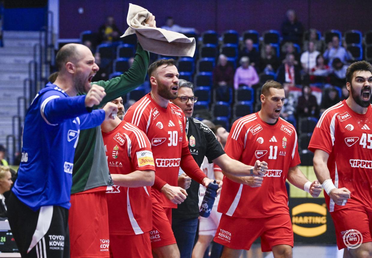 Borítókép: Kristianstad, 2026. január 16. Ligetvári Patrik (b) és Fazekas Gergő a dán-norvég-svéd közös rendezésű férfi kézilabda-Európa-bajnokság F csoportjának első fordulójában játszott Magyarország - Lengyelország mérkőzésen a svédországi Kristianstad Arénában 2026. január 16-án. Magyarország-Lengyelország 29-21. MTI/Hegedüs Róbert