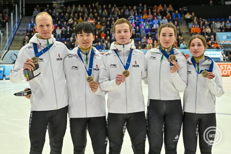 A Végi Diána Laura, Somodi Maja, Moon Wonjun, Nógrádi Bence összeállítású magyar vegyes váltó bronzérmet nyert vasárnap a rövidpályás gyorskorcsolyázók tilburgi Európa-bajnokságán.