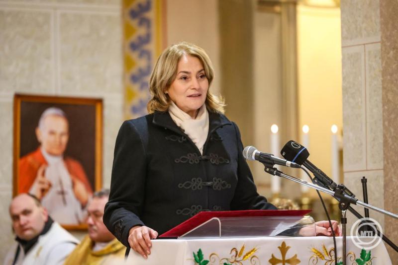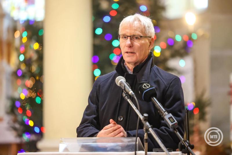 Borítókép: Döbrököz, 2026. január 18. Soltész Miklós, a Miniszterelnökség egyházi és nemzetiségi kapcsolatokért felelős államtitkára beszédet mond a toronysisak felújításának alkalmából tartott szentmise után a döbröközi megújult Szent Imre herceg templomban 2026. január 18-án. Huszonötmillió forint állami támogatást fordítottak a toronysisak felújítására, korábban adományokból megjavították a harangot és a templom orgonáját. MTI/Kiss Dániel