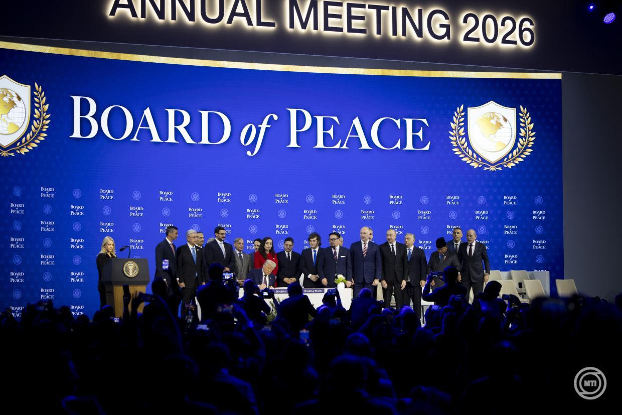 Borítókép: Davos, 2026. január 22. A Miniszterelnöki Kommunikációs Főosztály által közreadott képen Orbán Viktor miniszterelnök (b) és Donald Trump amerikai elnök az elnök kezdeményezésére életre hívott Béketanács alapító okiratának aláírásán Davosban 2026. január 22-én. MTI/Miniszterelnöki Kommunikációs Főosztály/Fischer Zoltán