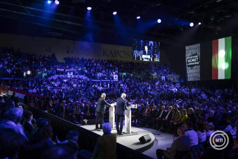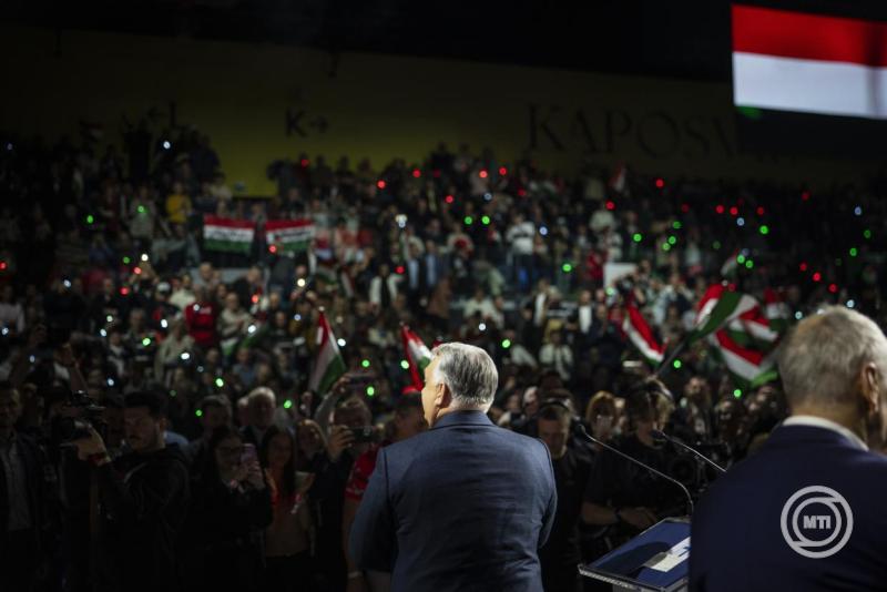 A 2026-os választásnak az egyik tétje, hogy Magyarországot ebbe a pénzügyi adósrabszolgaságba engedjük-e, vagy pedig nemet mondunk és ellenállunk. Ezért megindítottunk egy nemzeti petíciót, ahol három dologra lehet nemet mondani - mondta Orbán Viktor miniszterelnök, a Fidesz elnöke a Digitális Polgári Körök (DPK) háborúellenes gyűlésén Kaposváron szombaton.