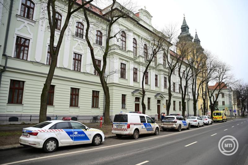 Borítókép: Debrecen, 2026. január 30. Rendőrautók és egy mentőautó a debreceni Szent József Óvoda, Általános Iskola, Gimnázium és Kollégium előtt 2026. január 30-án. A rendőrség terrorcselekmény elkövetésével fenyegetés bűntettének gyanúja miatt rendelt el nyomozást, miután több iskola is fenyegető e-mailt kapott Hajdú-Biharban. MTI/Czeglédi Zsolt