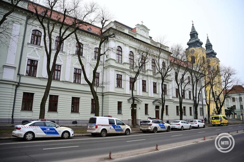Borítókép: Debrecen, 2026. január 30. Rendőrautók és egy mentőautó a debreceni Szent József Óvoda, Általános Iskola, Gimnázium és Kollégium előtt 2026. január 30-án. A rendőrség terrorcselekmény elkövetésével fenyegetés bűntettének gyanúja miatt rendelt el nyomozást, miután több iskola is fenyegető e-mailt kapott Hajdú-Biharban. MTI/Czeglédi Zsolt