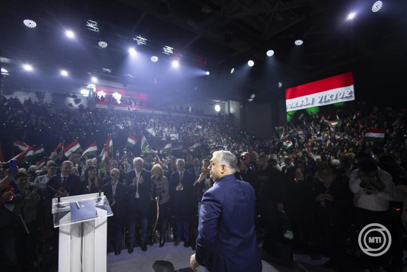 Borítókép: Hatvan, 2026. január 31. A Miniszterelnöki Kommunikációs Főosztály által közreadott képen Orbán Viktor miniszterelnök, a Fidesz elnöke beszédet mond a Digitális Polgári Körök által szervezett háborúellenes gyűlésen a Hatvani Sport- és Rendezvénycsarnokban 2026. január 31-én. MTI/Miniszterelnöki Kommunikációs Főosztály/Fischer Zoltán
