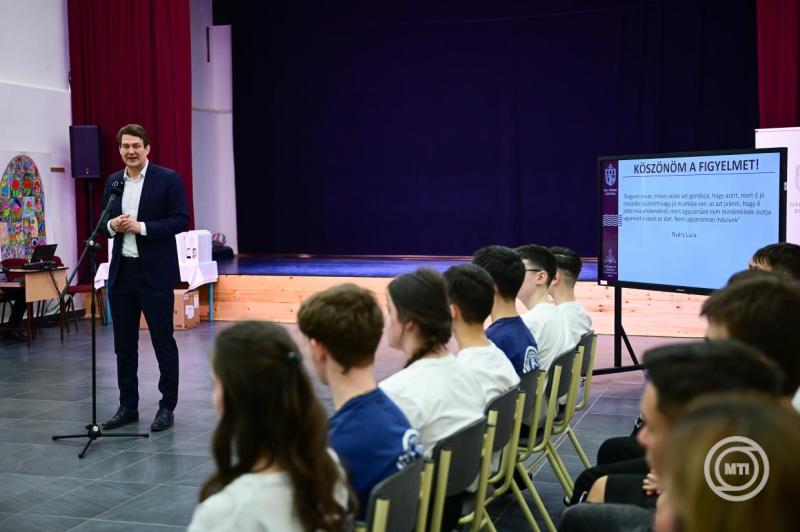 Borítókép: Sarkad, 2026. február 11. György László, a Miniszterelnöki Kabinetiroda Tanítsunk Magyarországért (TM) program kormánybiztosa beszédet mond iskolalátogatáson a Sarkadi Általános Iskolában 2026. február 11-én. Az iskola a 2023/24-es tanév tavaszi félévében csatlakozott a TM programhoz; jelenleg a 8. évfolyam 24 mentorálttal, 6 mentorral vesz részt abban. MTI/Czeglédi Zsolt