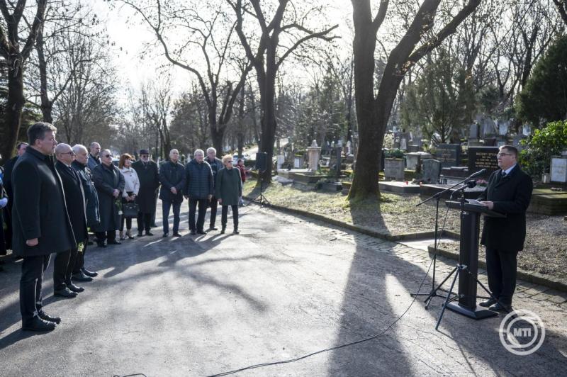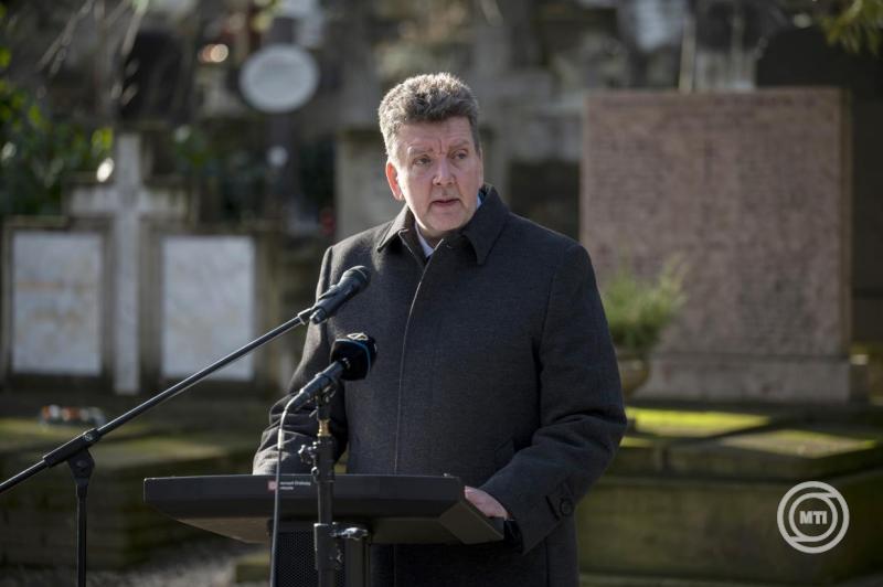 Borítókép: Budapest, 2026. február 13. Nagy János, a Miniszterelnöki Irodát vezető államtitkár beszédet mond Budapest ostroma civil áldozatainak síremlékénél a fővárosi Farkasréti temetőben a Nemzeti Örökség Intézete megemlékezésén 2026. február 13-án. MTI/Balogh Zoltán