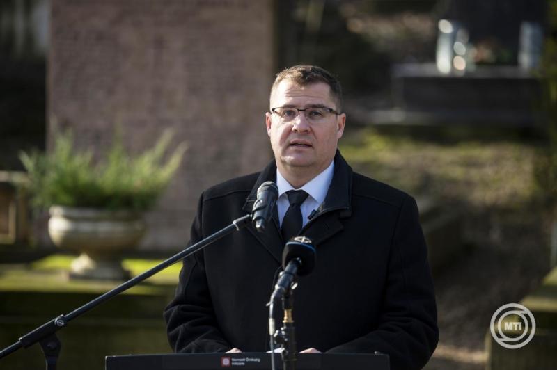 A második világháború végső szakaszához, 1944-hez hasonlóan ma ismét egy háború pengeélén táncolunk, egy olyan viharban, amikor nem egyszerűen kormányt, hanem sorsot választhatunk magunknak - jelentette ki a Miniszterelnöki Irodát vezető államtitkár pénteken a fővárosi Farkasréti temetőben, a Budapest ostroma civil áldozatainak emlékére a Nemzeti Örökség Intézet által rendezett megemlékezésen.