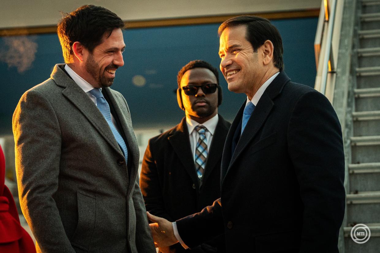 Megérkezett Budapestre az Egyesült Államok külügyminisztere; Marco Rubiót Magyar Levente, a Külgazdasági és Külügyminisztérium parlamenti államtitkára fogadta a Liszt Ferenc Nemzetközi Repülőtéren vasárnap.