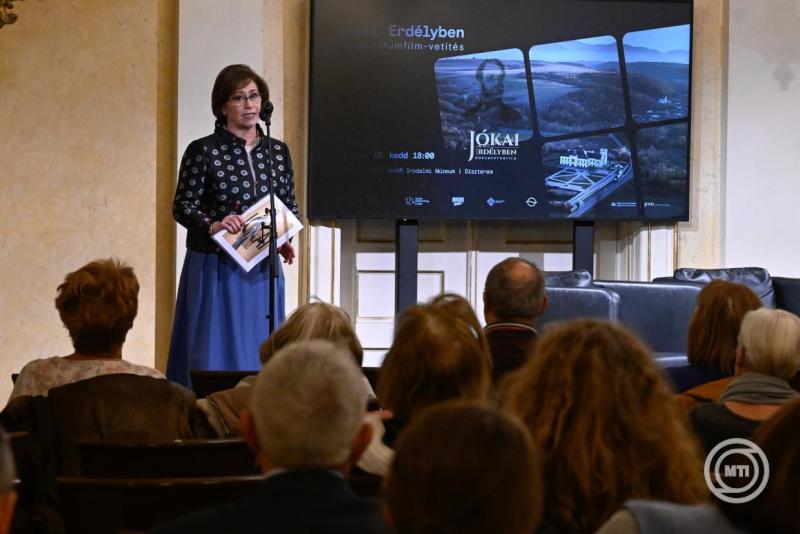 Borítókép: Budapest, 2026. február 17. Altorjai Anita, a Duna Médiaszolgáltató Nonprofit Zrt. vezérigazgatója köszöntőt mond Maksay Ágnes Jókai Erdélyben című dokumentumfilmjének díszbemutatóján a Petőfi Irodalmi Múzeumban 2026. február 17-én. A film február 18-án az M5 kulturális csatornán debütál. MTI/Máthé Zoltán