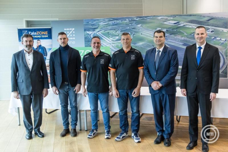Borítókép: Zalaegerszeg, 2026. február 17. Palkovics László kormánybiztos, a ZalaZONE Alapítvány kuratóriumi elnöke, Szilasi Gábor Észak-zalai fejlesztésekért felelős miniszteri biztos, Simon Péter és Süle Krisztián versenyzők, Vigh László, a térség fideszes országgyűlési képviselője és Balaicz Zoltán polgármester (b-j) a Budapest-Bamako-ralit megjárt ZalaZONE Offroad Team hazatérő sajtótájékoztatóján a zalaegerszegi ZalaZONE Járműipari Tesztpályán 2026. február 17-én. MTI/Katona Tibor