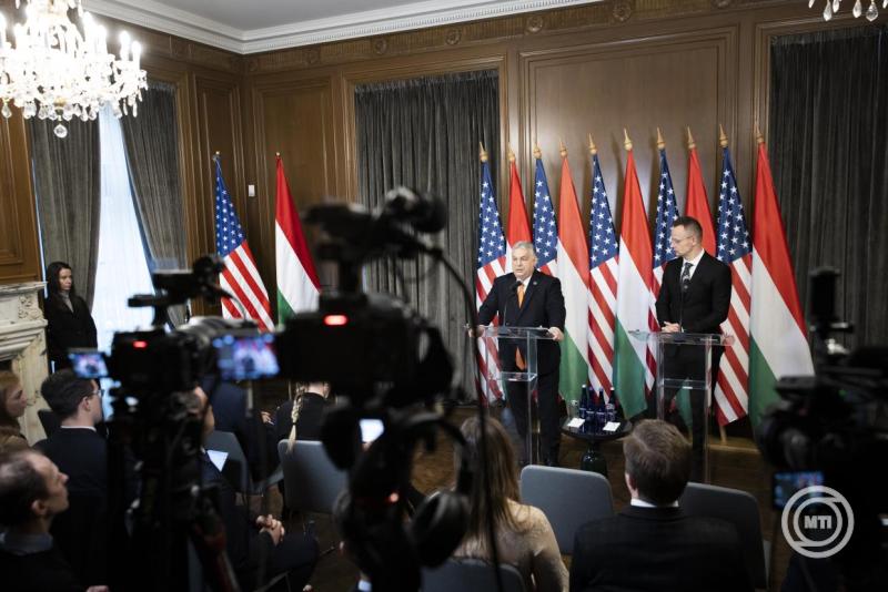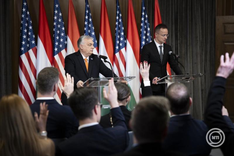Borítókép: Washington, 2026. február 19. A Miniszterelnöki Kommunikációs Főosztály által közreadott képen Orbán Viktor miniszterelnök (b) a Donald Trump amerikai elnök által kezdeményezett Béketanács alakuló ülése után tartott sajtótájékoztatón Washingtonban 2026. február 19-én. Mellette Szijjártó Péter külgazdasági és külügyminiszter. MTI/Miniszterelnöki Kommunikációs Főosztály/Fischer Zoltán