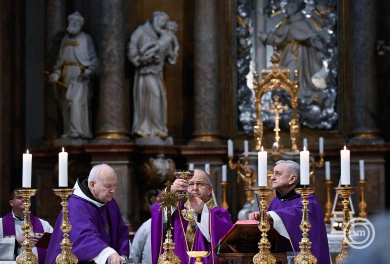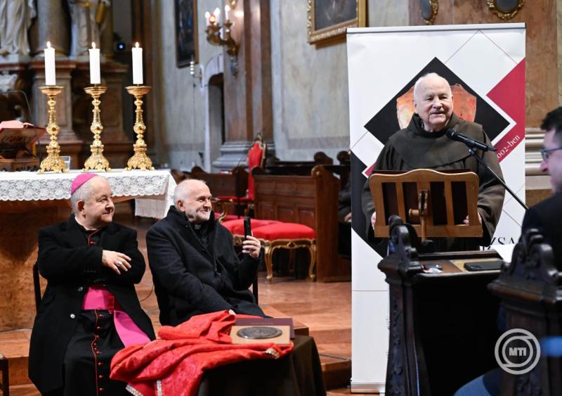 Borítókép: Budapest, 2026. február 21. A Parma fidei - Hit pajzsa díjjal kitüntetett Reisz Pál ferences szerzetes, az esztergomi ferences gimnázium egykori tanára, igazgatója (b2) a kommunizmus magyarországi áldozatainak emléknapja alkalmából évente odaítélt elismerés átadásán a belvárosi ferences templomban 2026. február 21-én. Mellette Horváth Béla, a díj alapítója, kurátora (b), Bábel Balázs Kalocsa-kecskeméti érsek, metropolita (j) és Sajgó Szabolcs jezsuita pap, jószolgálati nagykövet (j2). MTI/Bruzák Noémi