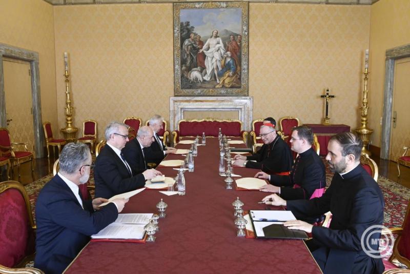 Sulyok Tamás a szentszéki államtitkárságon folytatta megbeszéléseit Pietro Parolin bíborossal. A találkozón jelen volt Mihaiţa Blaj, az államközi kapcsolatokért felelős államtitkár-helyettes.