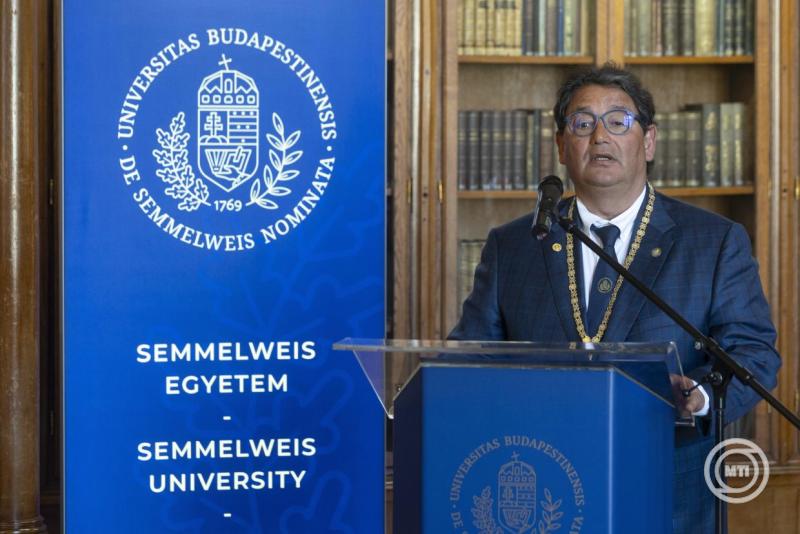 Merkely Béla, a Semmelweis Egyetem rektora emlékeztetett arra, hogy az SE oktatási tevékenysége mellett Magyarország legnagyobb betegellátója, hiszen minden tizedik magyar ember náluk gyógyul.