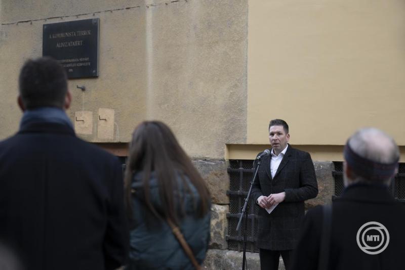 Borítókép: Budapest, 2026. február 25. Fülöp Attila, a Belügyminisztérium gondoskodáspolitikáért felelős államtitkára, a KDNP II. kerületi elnöke beszédet mond a kommunizmus áldozatainak emléknapján Budapesten, a Gyorskocsi utcai büntetés-végrehajtási intézetnél 2026. február 25-én. MTI/Kovács Márton