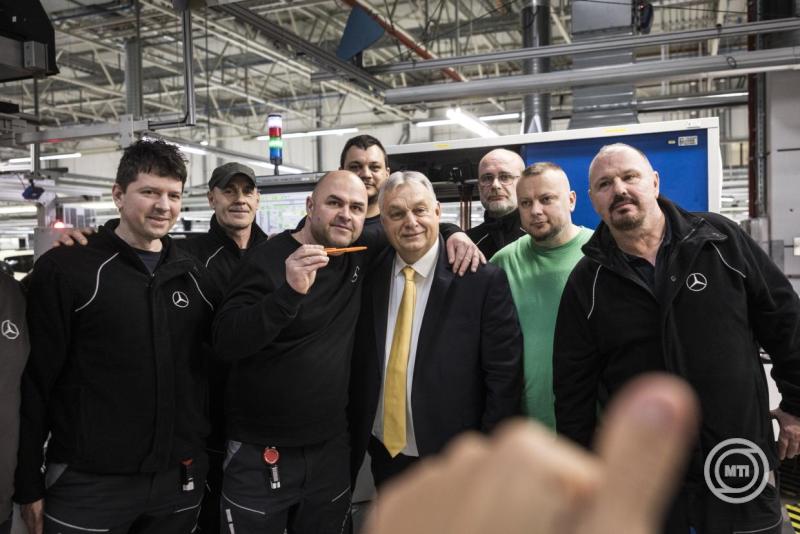 A miniszterelnök köszönetet mondott a Mercedes-Benz vezetésének, hogy "újra és újra Magyarország mellett döntöttek", a németeknek, akik a kecskeméti gyárat irányítják, és a gyár magyar dolgozóinak, majd elismerést adott át a gyár első és ötezredik munkavállalójának.