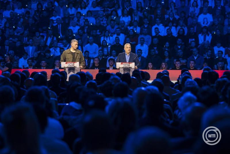 Borítókép: Debrecen, 2026. március 7. A Miniszterelnöki Kommunikációs Főosztály által közreadott képen Orbán Viktor miniszterelnök (j) és Lázár János építési és közlekedési miniszter a Digitális Polgári Körök által szervezett háborúellenes gyűlésen a debreceni Főnix Arénában 2026. március 7-én. MTI/Miniszterelnöki Kommunikációs Főosztály/Kaiser Ákos
