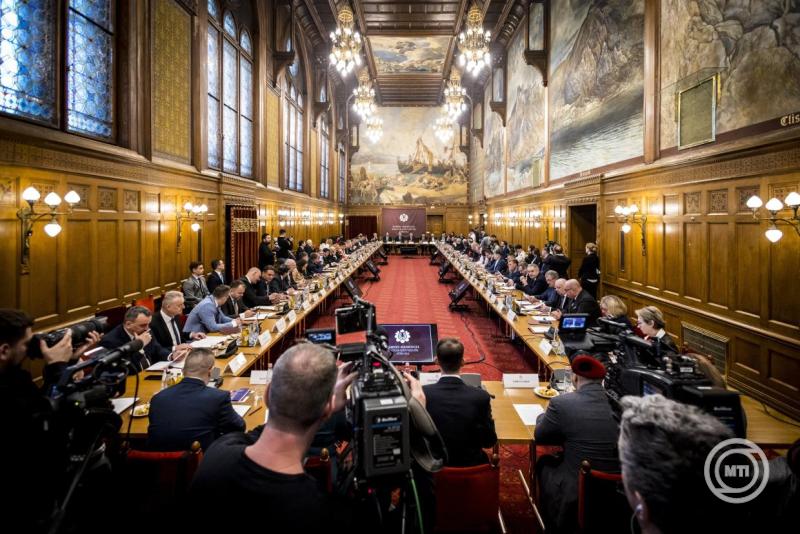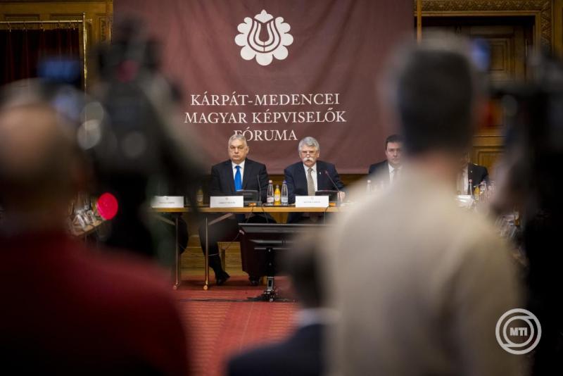 Borítókép: Budapest, 2026. március 12. A Miniszterelnöki Kommunikációs Főosztály által közreadott képen Orbán Viktor miniszterelnök (b3) a Kárpát-medencei Magyar Képviselők Fóruma előtt az Országházban 2026. március 12-én. MTI/Miniszterelnöki Kommunikációs Főosztály/Kaiser Ákos