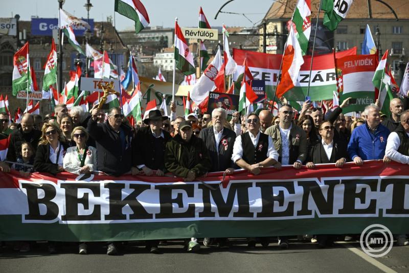 Borítókép: Budapest, 2026. március 15. A Civil Összefogás Fórum - Civil Összefogás Közhasznú Alapítvány (CÖF-CÖKA) Békemenetének résztvevői a Margit hídon az 1848-49-es forradalom és szabadságharc kitörésének évfordulóján 2026. március 15-én. MTI/Balogh Zoltán
