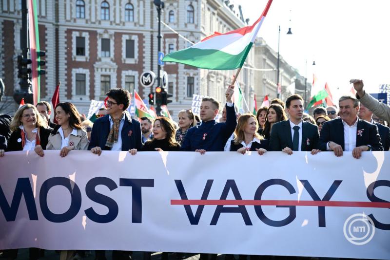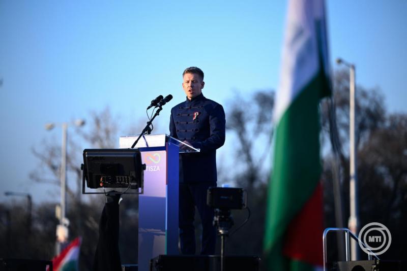 Borítókép: Budapest, 2026. március 15. Magyar Péter pártelnök a Tisza Párt Nemzeti Menet címmel megrendezett ünnepségén az Andrássy úton az 1848-49-es forradalom és szabadságharc kitörésének évfordulóján 2026. március 15-én. MTI/Bodnár Boglárka