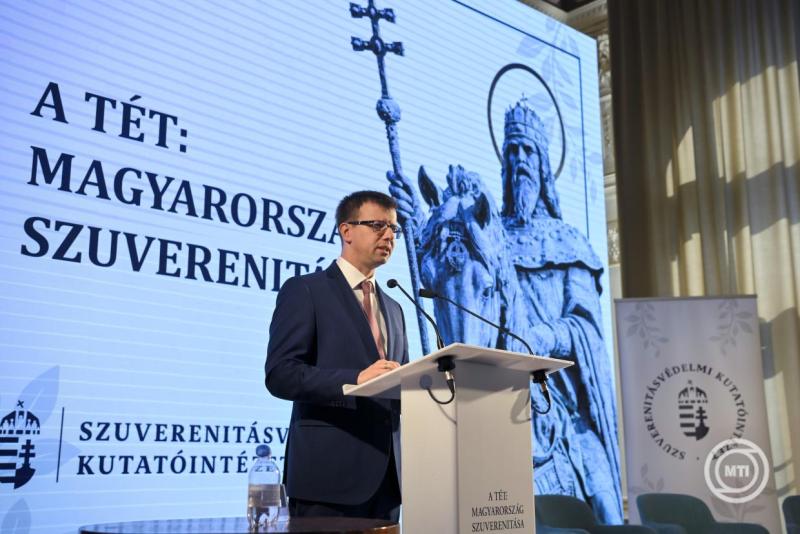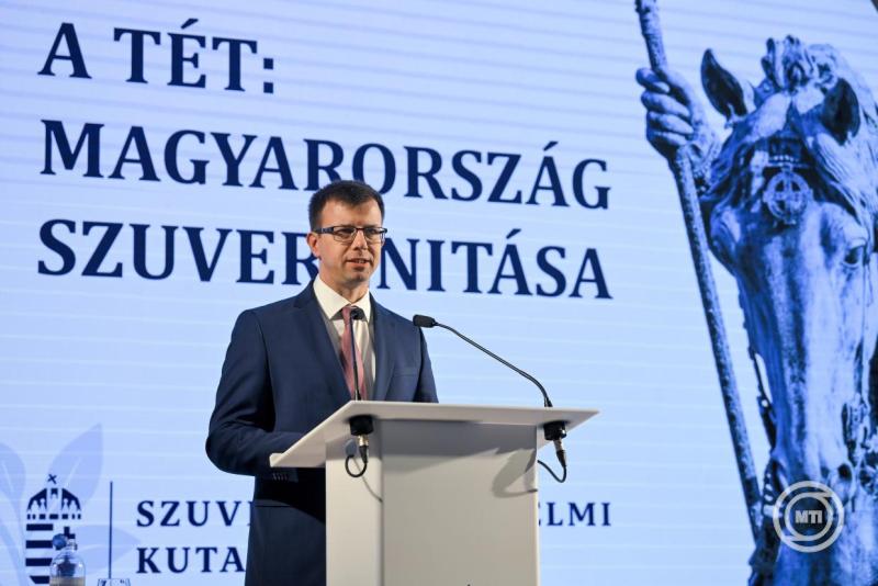 Borítókép: Budapest, 2026. március 16. Bóka János európai uniós ügyekért felelős miniszter beszédet mond a Szuverenitásvédelmi Kutatóintézet A tét: Magyarország szuverenitása című konferenciáján Budapesten, a Márai Sándor Művelődési Házban 2026. március 16-án. MTI/Purger Tamás