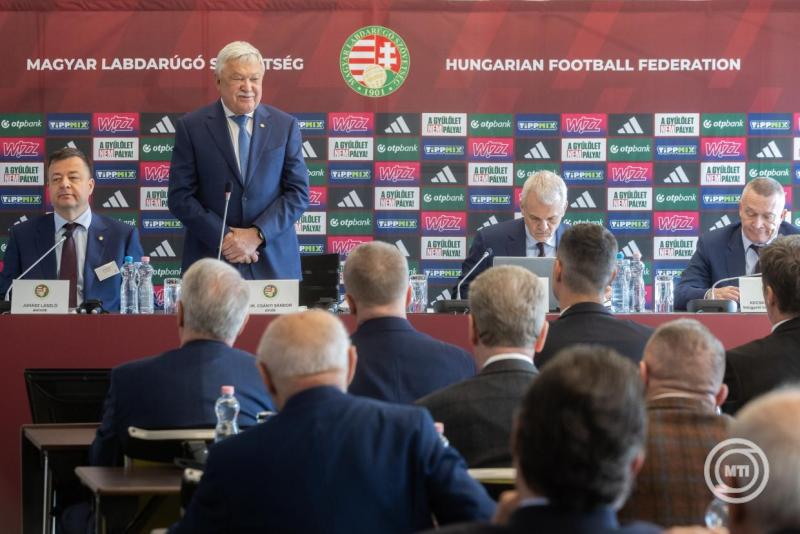 Borítókép: Telki, 2026. március 20. Csányi Sándor, a Magyar Labdarúgó Szövetség (MLSZ) elnöke sajtótájékoztatón az MLSZ közgyűlése után a telki Globall Football Park & Sporthotelben 2026. március 20-án. MTI/Kocsis Zoltán