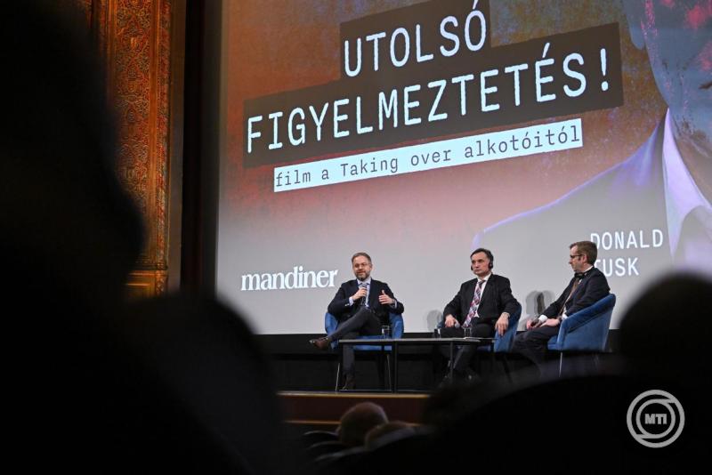 Borítókép: Budapest, 2026. március 20. Orbán Balázs, a miniszterelnök politikai igazgatója, Zbigniew Ziobro, Lengyelország korábbi igazságügyi minisztere és főügyésze és Szalai Zoltán, a Mandiner főszerkesztője (b-j) a Michal Karnowski lengyel újságíró és filmkészítő Last Warning / Utolsó figyelmeztetés című dokumentumfilmjének vetítését követően tartott pódiumbeszélgetésen az Uránia Nemzeti Filmszínházban 2026. március 20-án. MTI/Purger Tamás