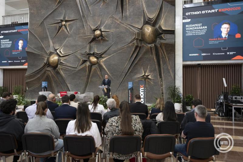 Borítókép: Gödöllő, 2026. március 21. Hankó Balázs kultúráért és innovációért felelős miniszter beszédet mond a harmadik Otthon Start Expón Gödöllőn, a Magyar Agrár- és Élettudományi Egyetemen 2026. március 21-én. MTI/Lakatos Péter