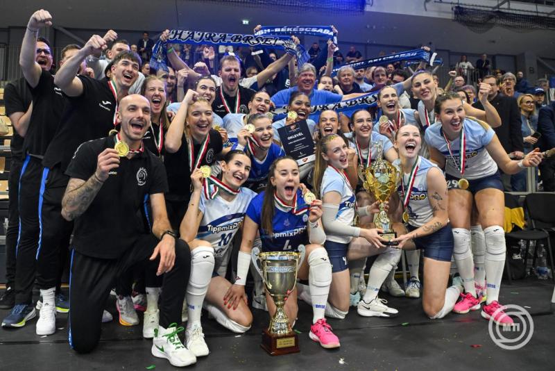 Borítókép: Budapest, 2026. március 21. A győztes MBH-Békéscsaba játékosai ünnepelnek a női röplabda Mol Magyar Kupa döntőjében játszott MBH-Békéscsaba - Fatum Nyíregyháza mérkőzés végén a fővárosi Dr. Koltai Jenő Sportközpontban 2026. március 21-én. A Békéscsaba nyerte a MOL női röplabda Magyar Kupát, miután a fináléban három szettben legyőzte a Nyíregyházát. MTI/Purger Tamás