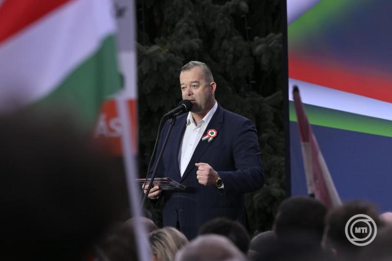 Borítókép: Miskolc, 2026. március 21. Lázár János építési és közlekedési miniszter beszédet mond Orbán Viktor miniszterelnök, a Fidesz elnöke országjárásának miskolci állomásán, a Szent István téren 2026. március 21-én. MTI/Hegedüs Róbert
