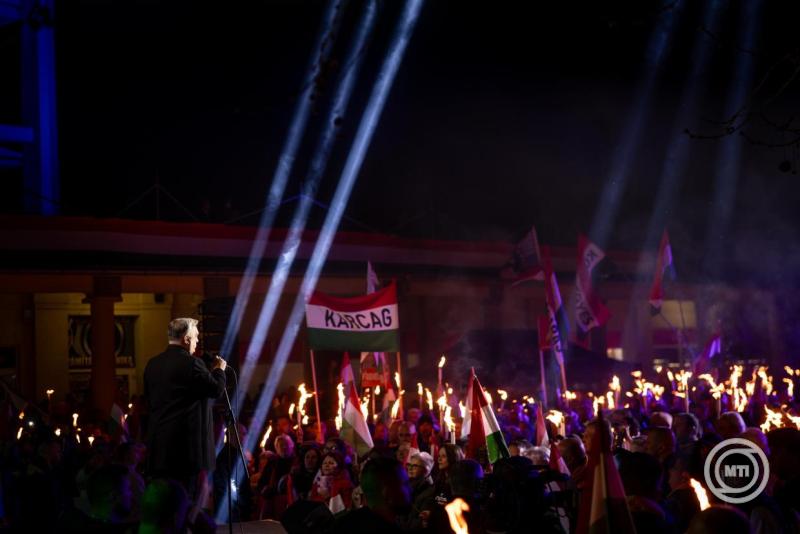 Felidézte 1989-et, amikor nemet kellett mondani a szovjeteknek, aztán 2015-16-ban több ízben a németeknek a migráció ügyében. Hozzátette, hogy 2022-ben nemet mondott Brüsszelnek is, amikor az egész Európai Unió felállt az ukránok mögött és sajátjának nyilvánította az orosz-ukrán háborút. Hangsúlyozta, hogy most, 2026-ban is úgy érzi, meg tudja ezt oldani, és nemet tud mondani az ukránoknak. "Zelenszkij, itt nem lesz ukránbarát kormány" - jelentette ki.